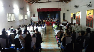 Os educandos do 6° "C" e 7° "D" foram instigados a participar do BINGO DO CONHECIMENTO! Uma forma divertida de revisar os conteúdos "SUBSTANTIVO" e "ADJETIVO". Funcionamento do JOGO: cada número sorteado correspondia a um substantivo ou advérbio para futura classificação pelos educandos. O ganhador seria aquele que completasse por primeiro a sua cartela e classificasse corretamente os termos solicitados. Professor Felipe Tiago